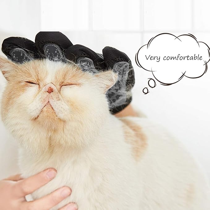 - [Pet Grooming glove]: Great job of picking up pet's shedding hair. Pet gloves prove to be excellent in removing & trapping loose furry pet hair, while grooming the pet quickly, gently and effectively. Hair sticks to the gloves and is easily removed for disposal.