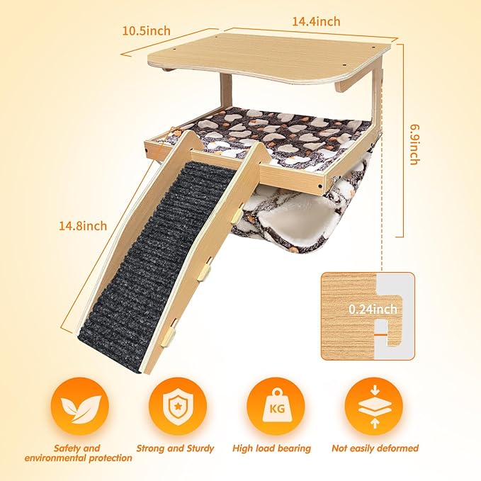 - 【High Quality Material】This guinea pig hideout is made of natural wood, which is safe and environmentally friendly, sturdy and durable, with excellent load-bearing capacity. At the same time, it can resist deformation and damage, creating a safe hiding place for your small pets, the hammock and double-sided mat are soft, washable and reusable.