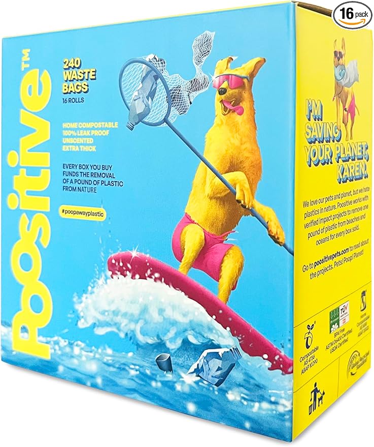 100% Certified Home Compostable Dog Poop Bags - ASTM D6400 & AS 5810 Compliant Dog Waste Bags, 240 bags, 16 rolls, unscented