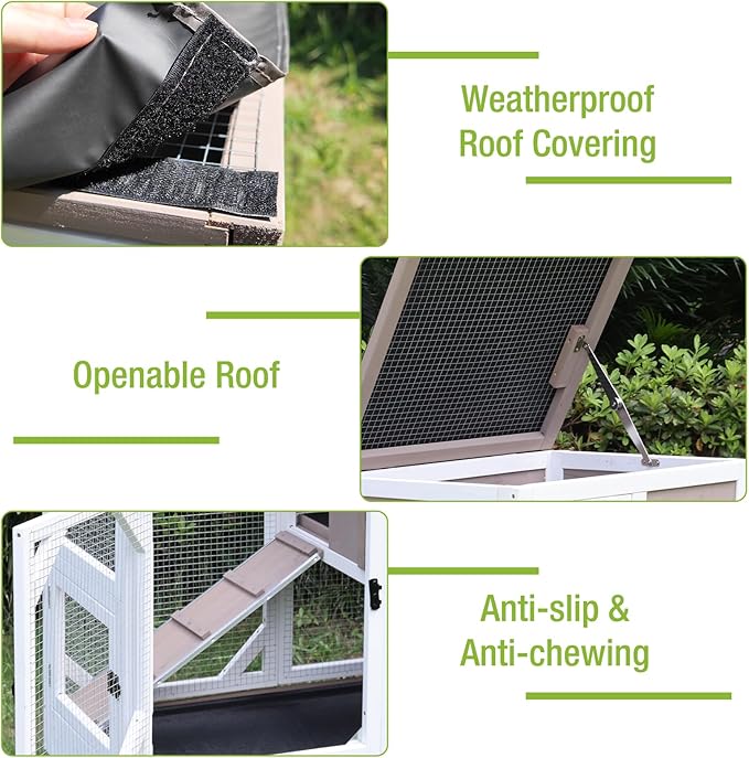- Indoor and Outdoor: The openable roof allows for easy feeding and interaction. Plus, the waterproof covering shields your pet from the weather and offers shade, making this hutch perfect for both indoor and outdoor use