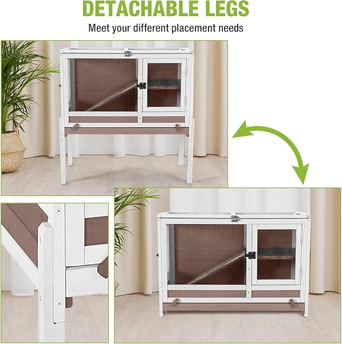 GUTINNEEN Rabbit Hutch Bunny House, 36.6" L Rabbit Cage with Anti Chewing Ramp, Guinea Pig Cage with Cooling Galvanized Sheet, Detachable Legs(Brown)