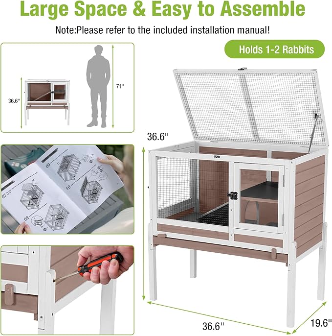 - Spacious Activity Space: Measures 36.6''L x 19.6''W x 36.6''H, providing ample space for 1 rabbit and 1-2 hamsters, guinea pigs, or gerbil.