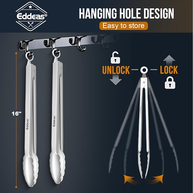 - Heat Resistant Up To 600°F - Eddeas Heavy Duty BBQ tongs heat resistant up to 600°F, Cooking tongs have ergonomic handles to ensure good grip and control, avoid burns and provide greater comfort. The metal tongs are super heat resistant and easy to clean, simply hand wash or put in the dishwasher.