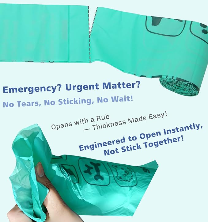 - 𝐓𝐡𝐢𝐜𝐤 & 𝐅𝐮𝐥𝐥 𝐋𝐞𝐚𝐤-𝐏𝐫𝐨𝐨𝐟:The 20-micron (20% thicker than regular variants) thickness ensures dog bags for poop biodegradable are sturdy, leak-proof, and less prone to tearing, handling even the messiest cleanups without issue