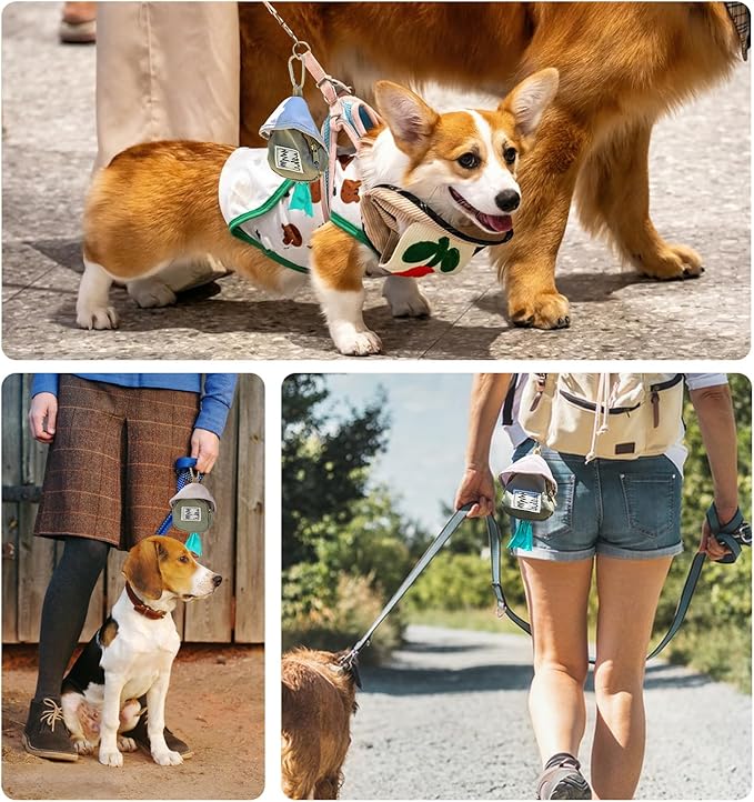 - 𝐒𝐭𝐲𝐥𝐞 𝐎𝐧-𝐭𝐡𝐞-𝐆𝐨:A separate biodegradable dog poop bag dispenser included in the set. This palm-sized bag holder effortlessly attaches to belts, strollers, or backpacks—making clean-ups simpler and faster than ever