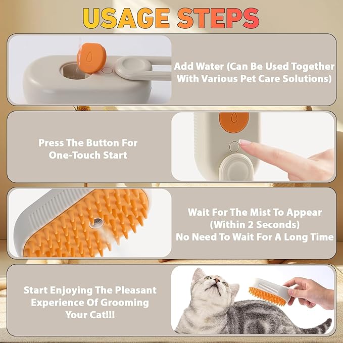 - Easy To Use: The pet steam brush has a handle that is easy to hold and easy to use.