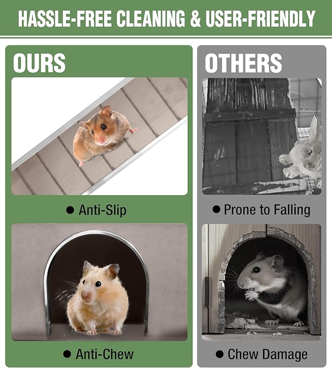 - ๐๐๐ฆ๐จ๐ฏ๐๐๐ฅ๐ ๐๐ข๐ซ๐ ๐๐๐ฌ๐ก ๐ ๐ฅ๐จ๐จ๐ซ - Metal wire netting above the leakproof tray elevates pets, preventing contact with waste while allowing debris to fall through. Easy to remove for quick cleaning, keeping your small animal hygienic with minimal effort