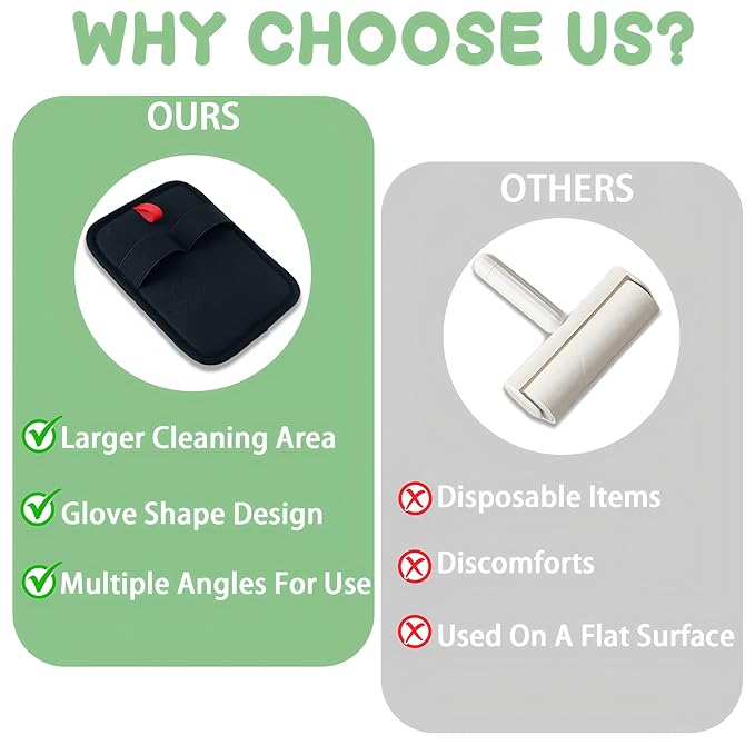 - 【Effortless Static Hair Removal】Powered by electrostatic technology, these pet hair removal glove effortlessly attract and lift pet hair, lint, and dust from sofas, carpets, car seats, and clothes—no sticky rollers or vacuum needed
